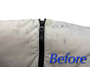 今回の事例は、ダウンジャンパーについた黒いオイルのシミ抜きです。